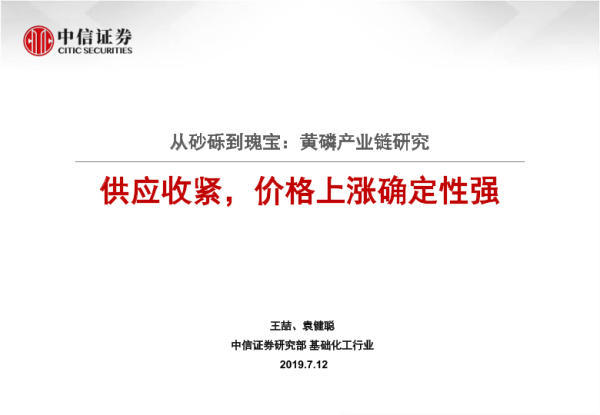【中信证券】【20190712】从砂砾到瑰宝:黄磷产业链研究-供应收紧,价格上涨确定性强-20页 行业研究