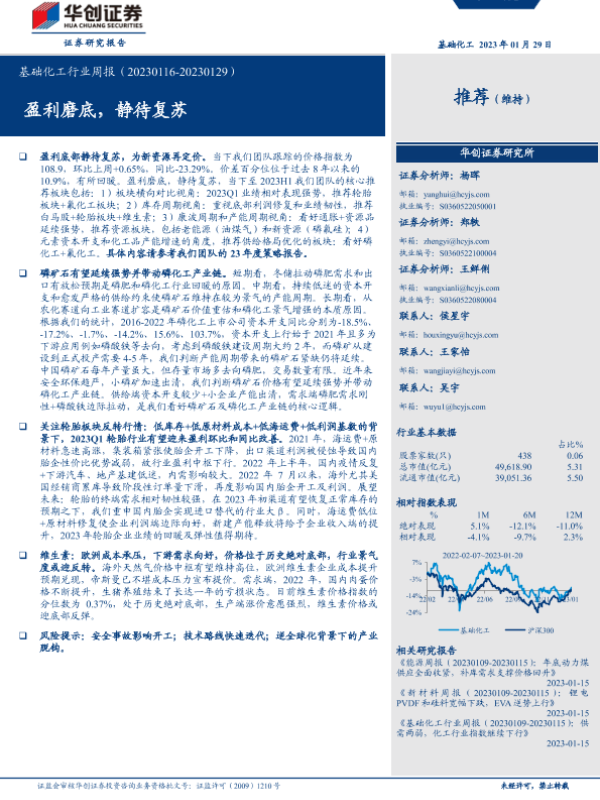 【华创证券】【20230129】基础化工行业周报:盈利磨底,静待复苏-63页 行业研究