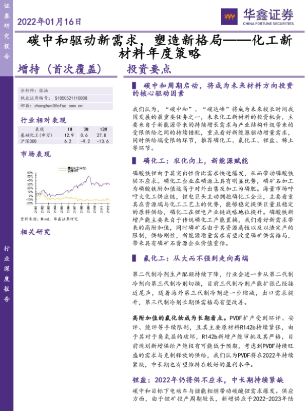 【华鑫证券】【20220116】化工新材料行业年度策略:碳中和驱动新需求,塑造新格局-57页 行业研究