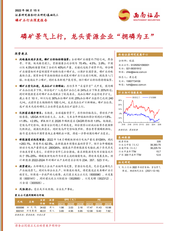 【西南证券】【20220615】磷矿石行业深度报告:磷矿景气上行,龙头资源企业“拥磷为王”-29页 行业研究