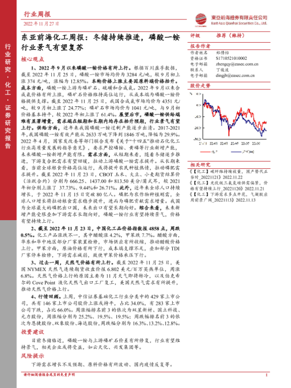 【东亚前海证券】【20221127】东亚前海化工周报:冬储持续推进,磷酸一铵行业景气有望复苏-23页 行业研究