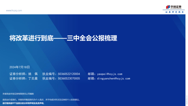 【华创证券】【20240718】三中全会公报梳理:将改革进行到底-31页 行业研究