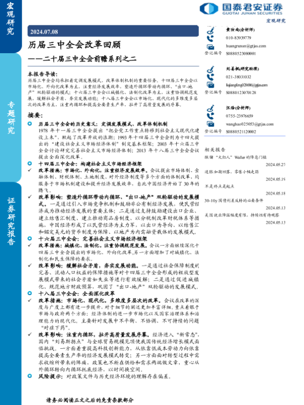 【国泰君安证券】【20240708】二十届三中全会前瞻系列之二:历届三中全会改革回顾-17页 行业研究