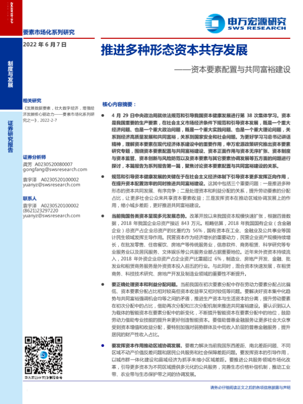 【申万宏源】【20220607】资本要素配置与共同富裕建设:推进多种形态资本共存发展-16页 行业研究