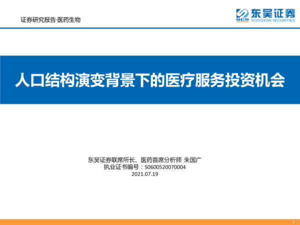 【东吴证券】【20210719】医药生物行业:人口结构演变背景下的医疗服务投资机会-56页 行业研究