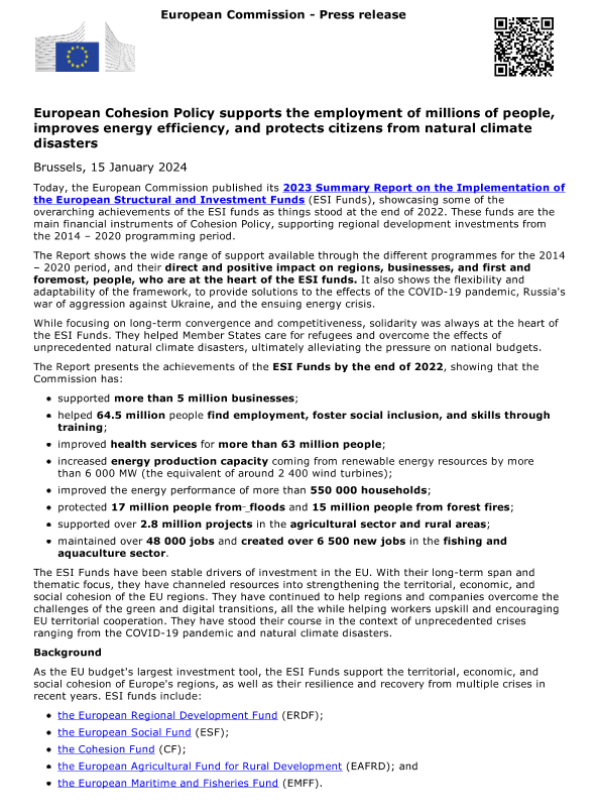 【European Commission】【20240115】2023年ESI基金实施总结报告-3页 行业研究