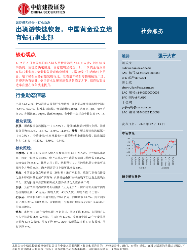 【中信建投证券】【20230213】社会服务行业:出境游快速恢复,中国黄金设立培育钻石事业部-29页 行业研究