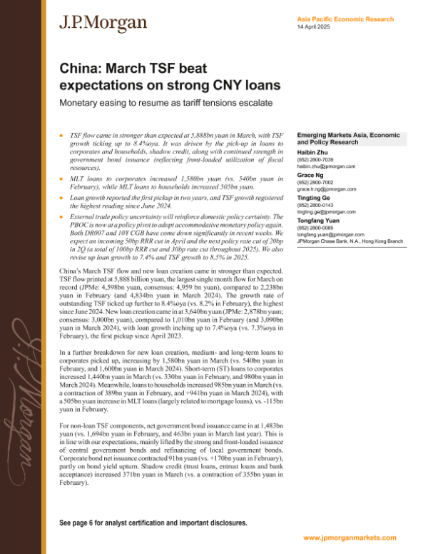 【J.P. Morgan】【20250414】FI-China March TSF beat expectations on strong CNY loans-10页 宏观策略