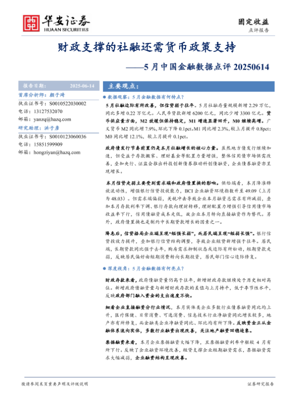 【华安证券】【20250614】财政支撑的社融还需货币政策支持——5月中国金融数据点评-9页 证券期货研究报告