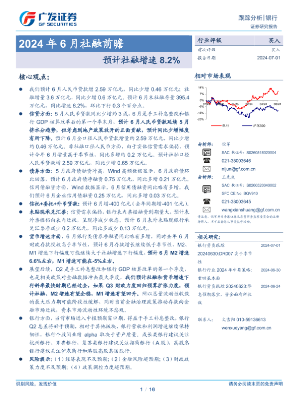 【广发证券】【20240701】2024年6月社融前瞻:预计社融增速8.2%-16页 行业研究