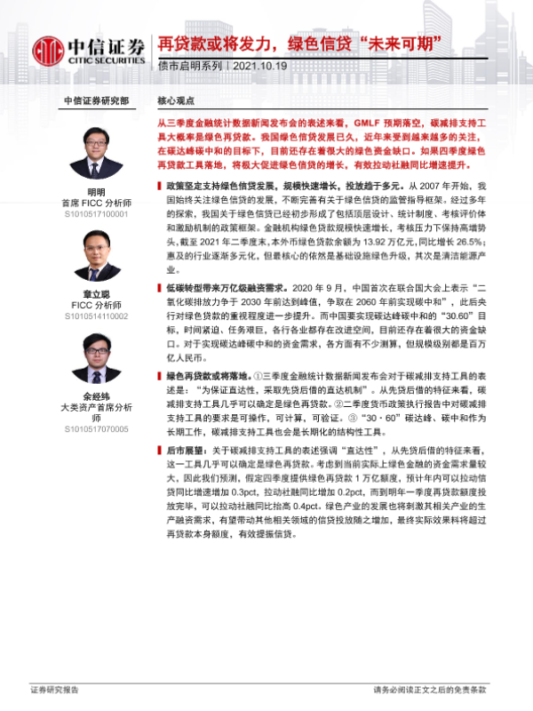 【中信证券】【20211019】债市启明系列:再贷款或将发力,绿色信贷“未来可期”-29页 行业研究