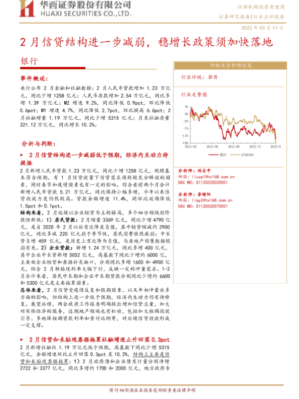 【华西证券】【20220311】2月信贷结构进一步减弱,稳增长政策须加快落地-4页 行业研究