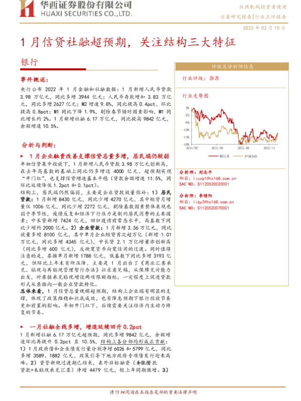 【华西证券】【20220210】1月信贷社融超预期,关注结构三大特征-4页 行业研究