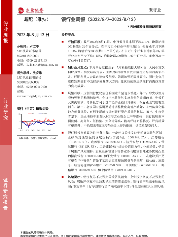 【东莞证券】【20230813】7月社融数据超预期回落-11页 行业研究
