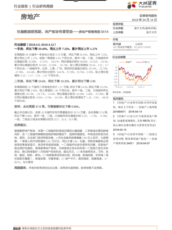 【天风证券】【20190415】社融数据超预期,地产板块有望受益——房地产销售周报-13页 行业研究