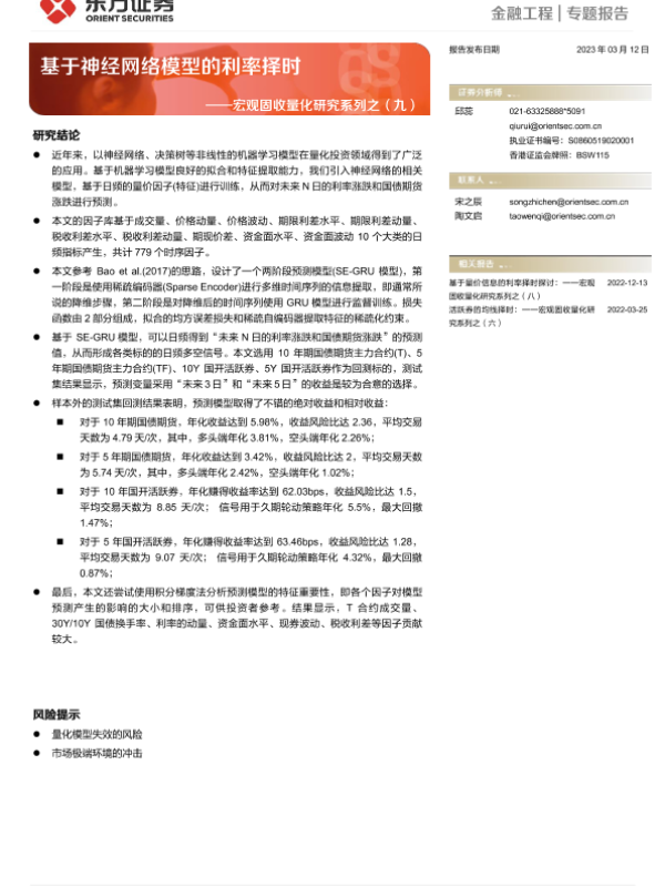 【东方证券】【20230312】宏观固收量化研究系列之(九):基于神经网络模型的利率择时-30页 行业研究