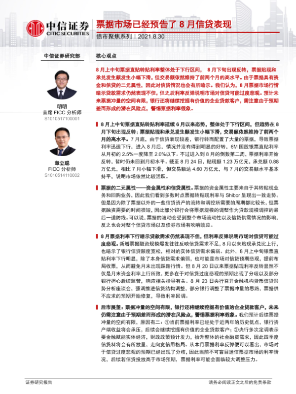 【中信证券】【20210830】债市聚焦系列:票据市场已经预告了8月信贷表现-23页 行业研究