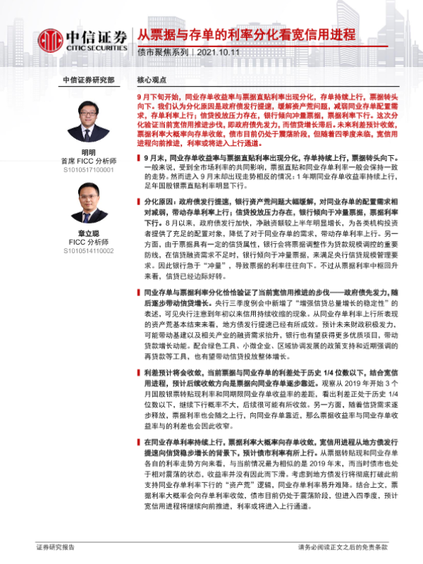 【中信证券】【20211011】债市聚焦系列:从票据与存单的利率分化看宽信用进程-25页 行业研究