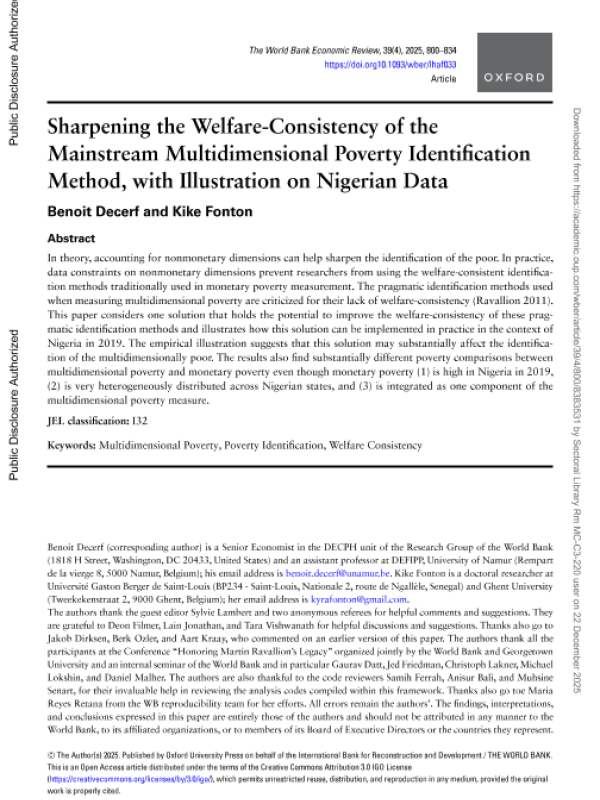 【世界银行&国际复兴开发银行】【2025】Sharpening the Welfare-Consistency of the Mainstream Multidimensional Poverty Identification Method, with Illustration on Nigerian Data-35页 学术论文