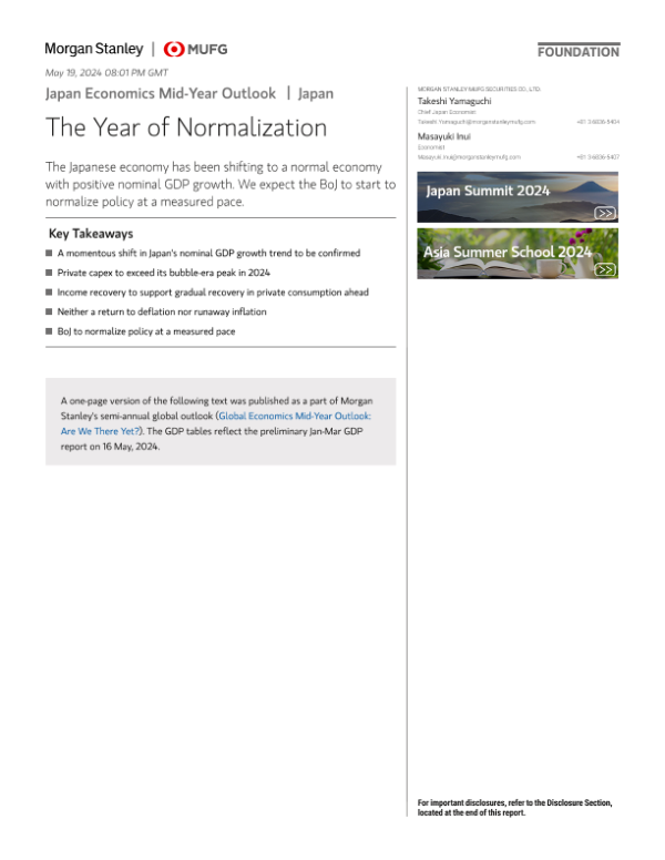【Morgan Stanley】【20240516】Morgan Stanley Fixed-Japan Economics Mid-Year Outlook The Year of Normalization-20页 行业研究