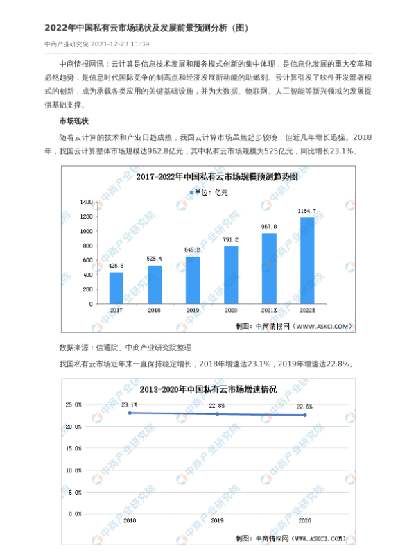 【中商产业研究院】【2022】2022年中国私有云市场现状及发展前景预测分析-2页 行业研究