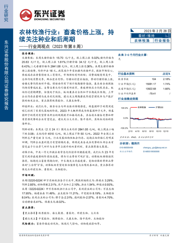 【东兴证券】【20230228】农林牧渔行业:畜禽价格上涨,持续关注种业和后周期-13页 行业研究
