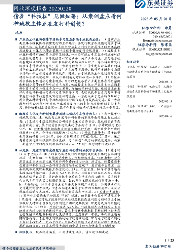 【东吴证券】【20250520】固收深度报告:债券“科技板”见微知著,从案例盘点看何种城投主体正在发行科创债?-23页 证券期货研究报告