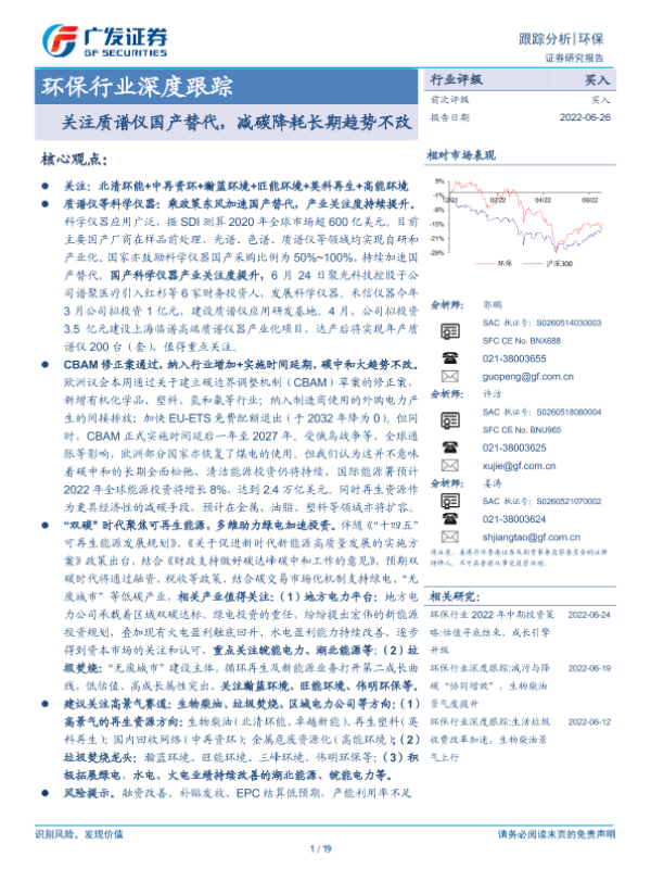 【广发证券】【20220626】环保行业深度跟踪:关注质谱仪国产替代,减碳降耗长期趋势不改-19页 行业研究