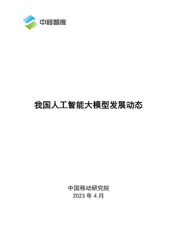 【中国移动研究院】【202304】我国人工智能大模型发展动态-12页 行业研究