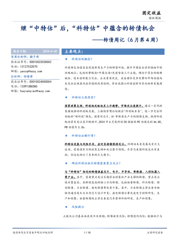【华安证券】【20240630】转债:继“中特估”后,“科特估”中蕴含的转债机会-16页 行业研究