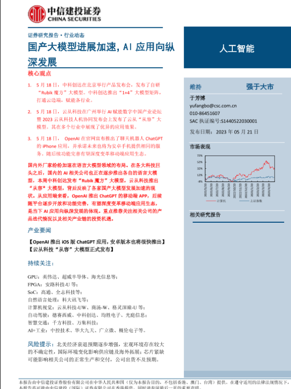 【中信建投证券】【20230521】人工智能行业:国产大模型进展加速,AI应用向纵深发展-16页 行业研究