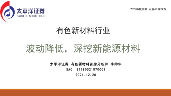 【太平洋证券】【20211225】有色新材料行业:波动降低,深挖新能源材料-29页 行业研究