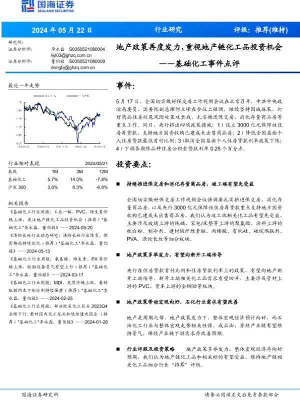 【国海证券】【20240522】基础化工行业事件点评:地产政策再度发力,重视地产链化工品投资机会-15页 行业研究