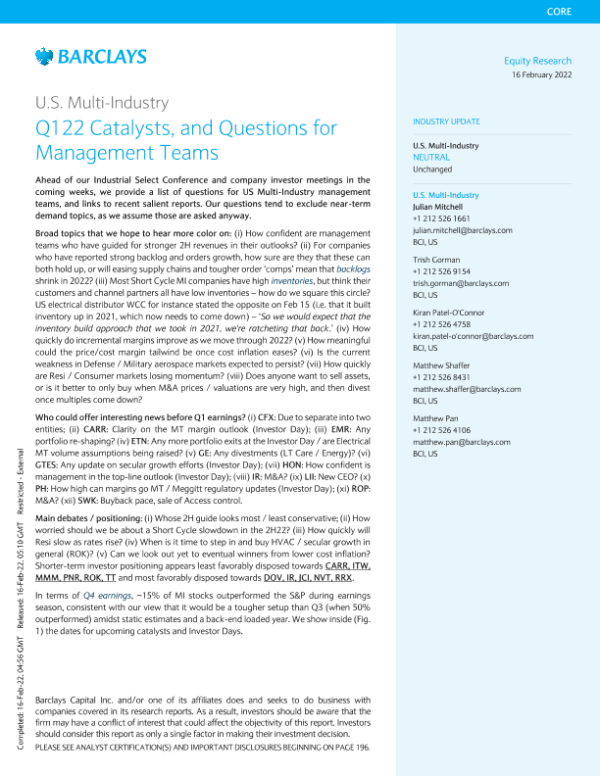【Barclays Capital Inc.】【20220216】巴克莱-美股投资策略-2022年第一季度催化剂和管理团队的问题-203页 行业研究