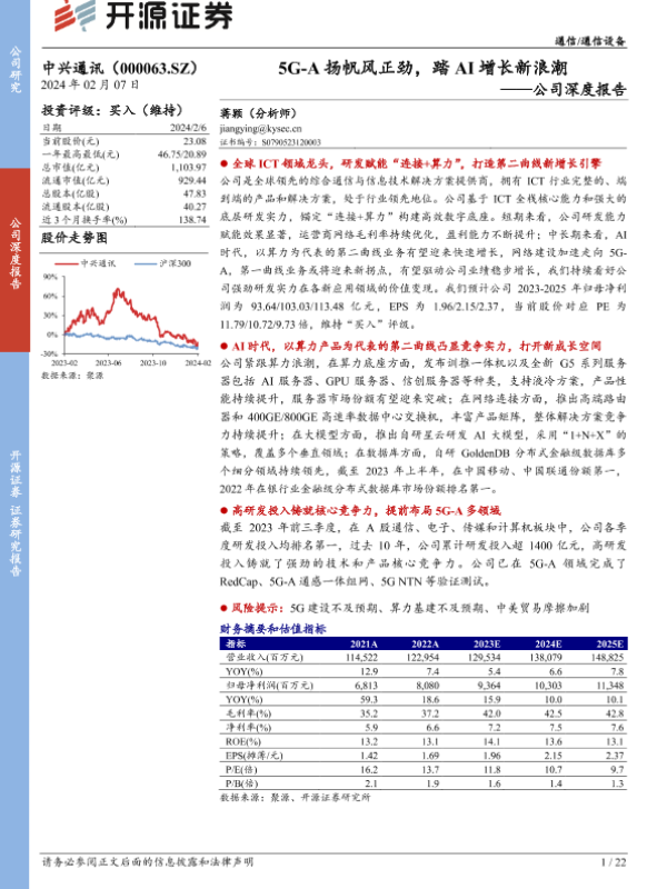 【开源证券】【20240207】20240207-开源证券-中兴通讯-000063.SZ-公司深度报告:5G-A扬帆风正劲,踏AI增长新浪潮-22页 行业研究