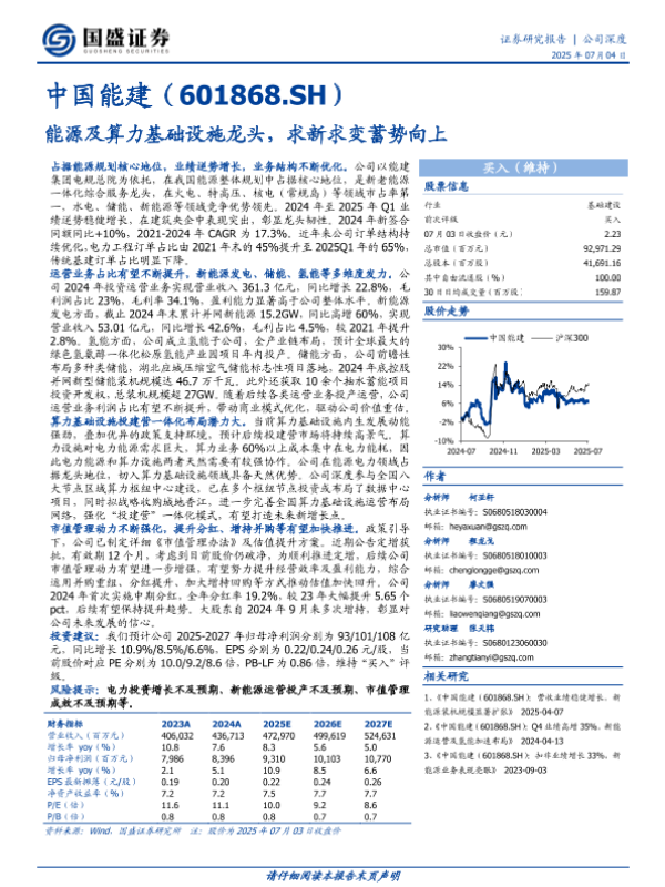 【国盛证券】【20250704】中国能建-能源及算力基础设施龙头,求新求变蓄势向上-25页 公司研究