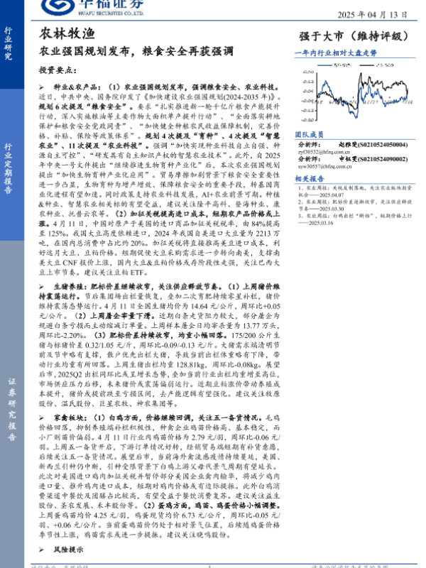 【华福证券】【20250413】农林牧渔行业定期报告:农业强国规划发布,粮食安全再获强调-13页 行业研究