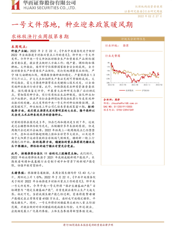 【华西证券】【20220227】农林牧渔行业周报第8期:一号文件落地,种业迎来政策暖风期-23页 行业研究