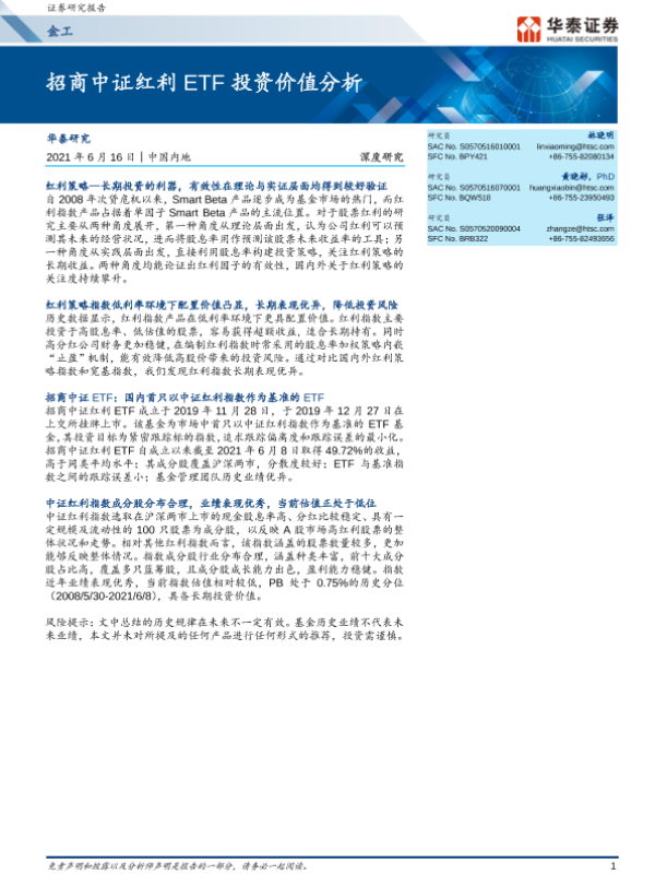 【华泰证券】【20210616】金工深度研究:招商中证红利ETF投资价值分析-24页 行业研究
