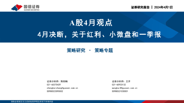 【国信证券】【20240401】A股4月观点:4月决断,关于红利、小微盘和一季报-32页 行业研究