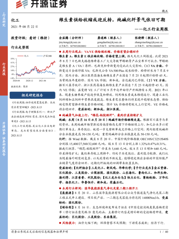 【开源证券】【20210822】化工行业周报:维生素供给收缩或迎反转,纯碱化纤景气依旧可期-40页 行业研究