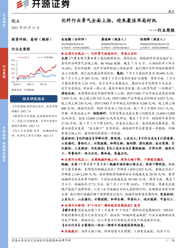 【开源证券】【20210711】化工行业周报:化纤行业景气全面上扬,迎来最佳布局时机-38页 行业研究