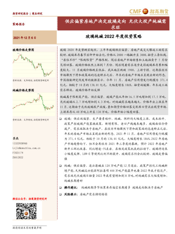 【招商期货】【20211206】玻璃纯碱2022年度投资策略:供应偏紧房地产决定玻璃走向,光伏大投产纯碱需求旺-31页 行业研究