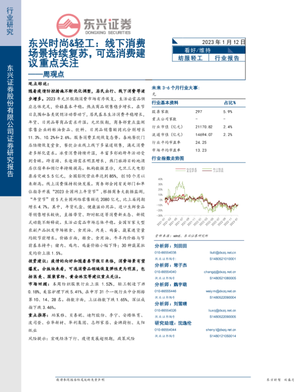 【东兴证券】【20230116】东兴时尚&轻工周观点:消费场景继续复苏叠加春节将至,利好线下消费-16页 行业研究