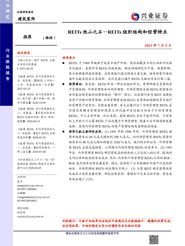 【兴业证券】【20210705】REITs他山之石—REITs组织结构和经营特点-20页 行业研究