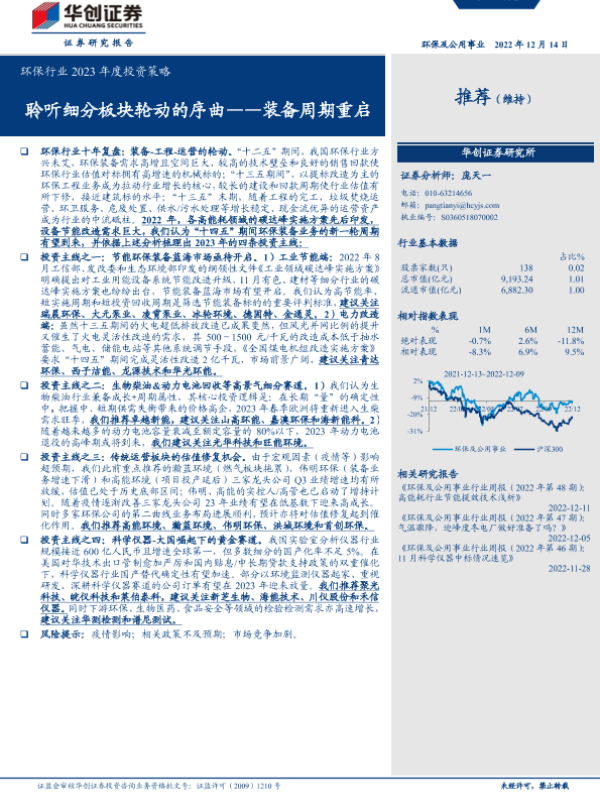 【华创证券】【20221214】环保行业2023年度投资策略:聆听细分板块轮动的序曲_装备周期重启-39页 行业研究