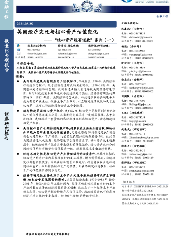 【国泰君安证券】【20210825】美国经济变迁与核心资产估值变化-19页 行业研究