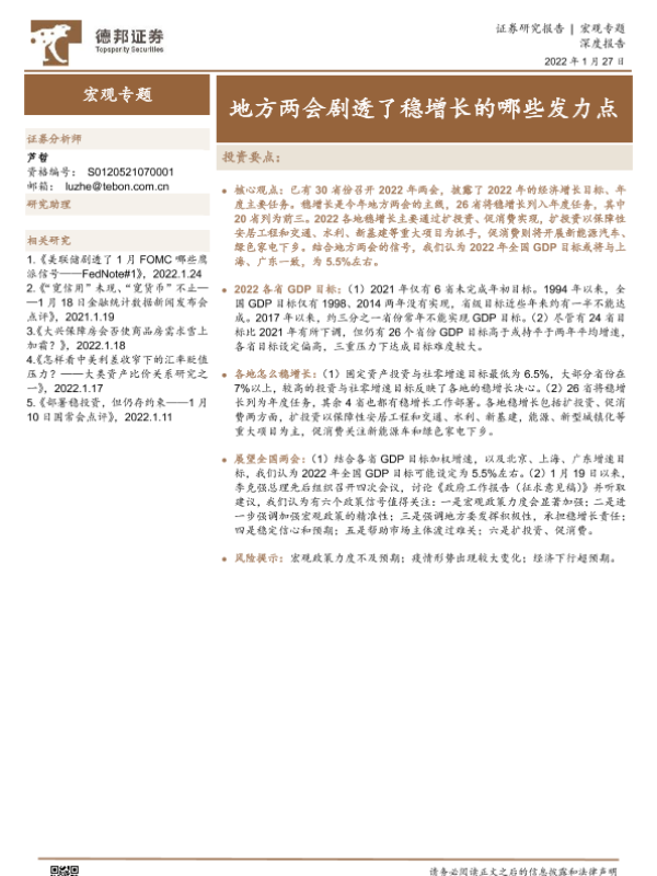 【德邦证券】【20220127】地方两会剧透了稳增长的哪些发力点-21页 行业研究