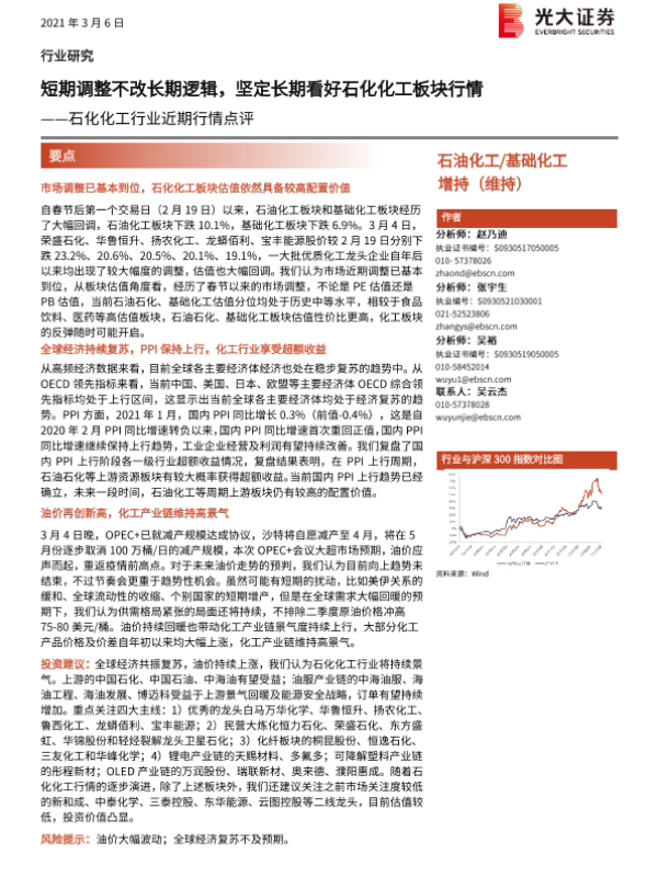 【光大证券】【20210306】石化化工行业近期行情点评:短期调整不改长期逻辑,坚定长期看好石化化工板块行情-14页 行业研究