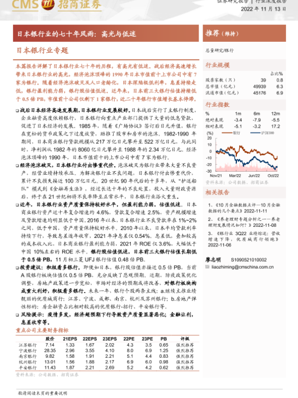 【海通证券】【20221113】日本银行业专题:日本银行业的七十年风雨,高光与低迷-23页 行业研究
